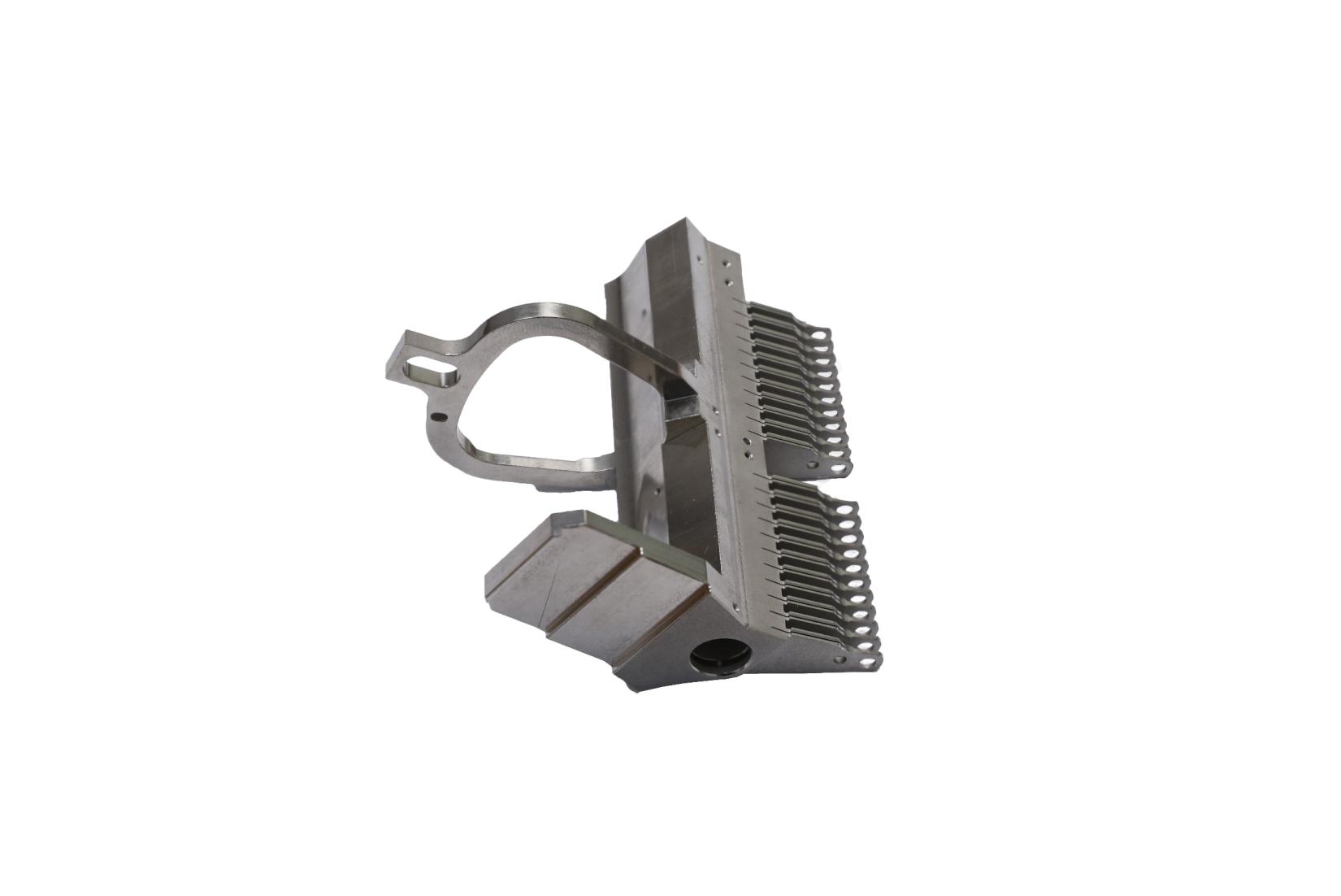 ![]() 產(chǎn)品名:E-驅動架 材料:鈦合金 主要工藝:CNC、平磨、慢走絲 技術難點: --多層薄片架變形控制難度大,平面度0.01mm; -- 各層薄片架位置精度±0.015mm; | ![]() 產(chǎn)品名: 銷釘/閥芯螺絲類小零件 材 料:不銹鋼、鋁/銅合金 主要工藝:自動車床 技術難點: --多軸自動車床批量加工,精度0.005mm | 產(chǎn)品名:沖壓模-沖頭 材料:CD650鎢鋼 主要工藝:平磨、慢走絲、拋光 技術難點: --尺寸及形位公差精度0.003mm; --沖頭成型部位拋光Ra0.05 |