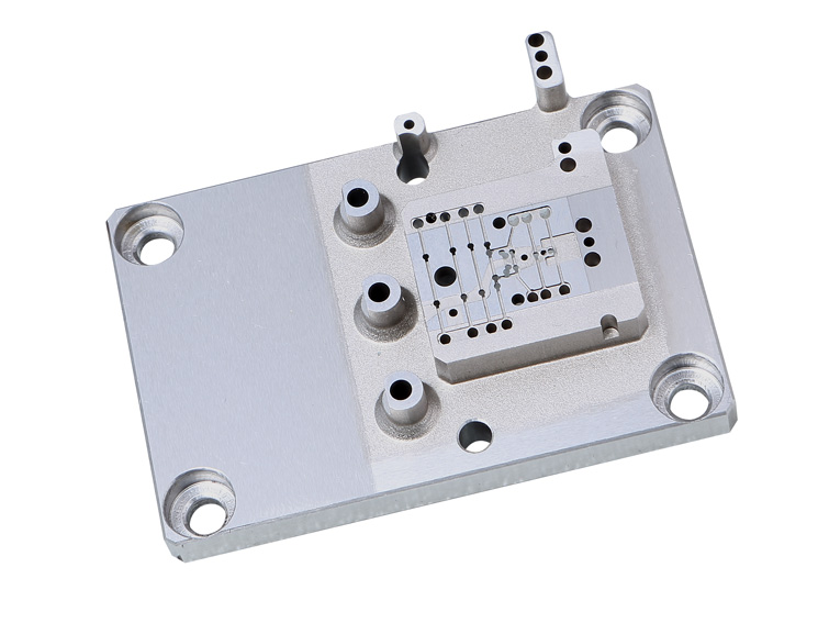 1.產品名稱:滑動組頂塊 2.材料:TEKAPEEK CMF 3.主要工藝:CNC 4.技術難點:小孔尺寸為φ0.31+0.02mm,相互孔位為±0.0075mm | 2.材料:SUS420 3.主要工藝:慢絲、火花 4.技術難點:慢絲火花加工處利邊,深度及尺寸公差均為+0.01mm,相對位置±0.01mm | 1.產品名稱:Holder轉軸 2.材料:ZL101A,鋁鑄坯 3.主要工藝:鑄造、數(shù)車、CNC 4.技術難點:鑄坯材質均勻性,人工時效控制變形,兩端精軸同軸度0.02mm |