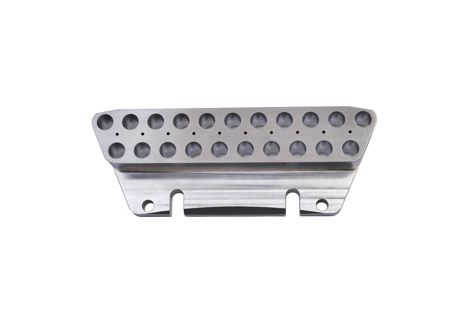 ![]() 1.產品名稱:模具 2.材料:SUS316L 3.主要工藝:CNC 4.技術難點:21個孔位公差±0.005mm,孔內粗糙度Ra0.1-0.2,且不能有劃痕 | 2.材料:白色PET 3.主要工藝:CNC 4.技術難點:φ1.4孔公差+0.02mm,深度20.8mm,公差-0.03mm,位置度±0.01 | ![]() 2.材料:SUS316 3.主要工藝:數(shù)車、四軸CNC 4.技術難點:內孔及頭部外圓同軸度0.03 |