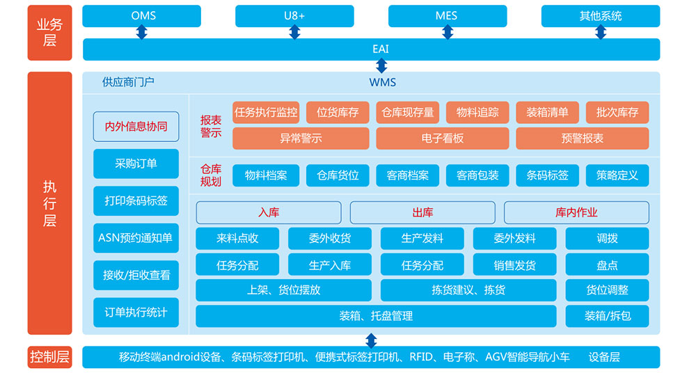 公司技術(shù)WMS倉儲執(zhí)行管理系統(tǒng)采用最新的信息網(wǎng)絡技術(shù),通過條碼/RFID技術(shù)、移動打印、二維碼解析、AGV智能導航小車及先進生產(chǎn)管理理念,能夠有效的對倉庫流程和空間利用進行管理,實現(xiàn)最小包裝跟蹤管理、批次管理、先進先出管理、快速掃碼出入庫和動態(tài)盤點,提高企業(yè)倉庫空間利用率及員工工作效率。