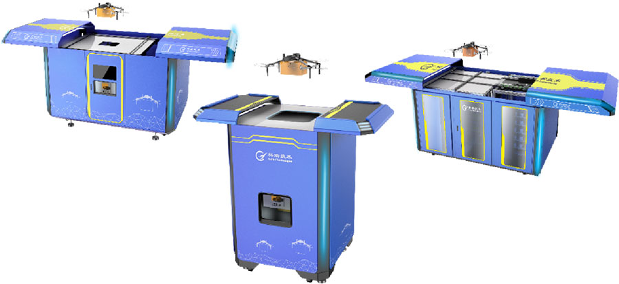 頂部自動對開門,停機(jī)坪使用面積最大化,方便無人機(jī)降落。專用貨架可放置 20 個(gè)存儲倉,每個(gè)倉位單獨(dú)存取。底架采用型鋼焊接成型,保證整體強(qiáng)度??膳渲贸潆娔K,方便無人機(jī)充電。