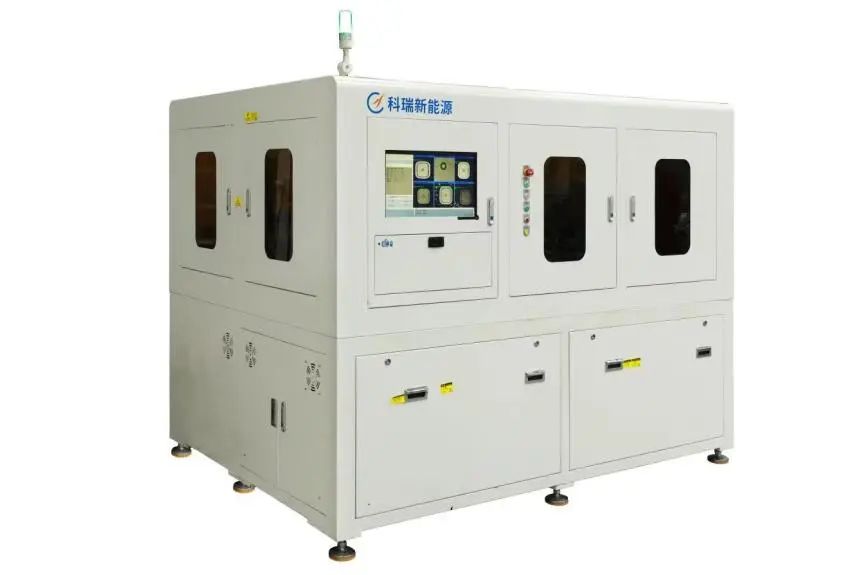 激光模切分條一體機(jī)主要應(yīng)用于極片極耳成型與極片分條,制成品可供應(yīng)疊片設(shè)備與卷繞設(shè)備。采用激光高速切割技術(shù),搭配獨(dú)立自適應(yīng)除塵系統(tǒng)與排廢料系統(tǒng),在獨(dú)立空間內(nèi)進(jìn)行極耳切割;通過(guò)收放卷裝置、牽引裝置與張力控制裝置實(shí)時(shí)聯(lián)動(dòng),控制極片穩(wěn)定高速傳輸,通過(guò)五金刀模進(jìn)行極片分條,并采用高速相機(jī)自動(dòng)識(shí)別切割質(zhì)量、尺寸精度與來(lái)料異常,及時(shí)排除品質(zhì)不良,保證產(chǎn)品質(zhì)量安全。